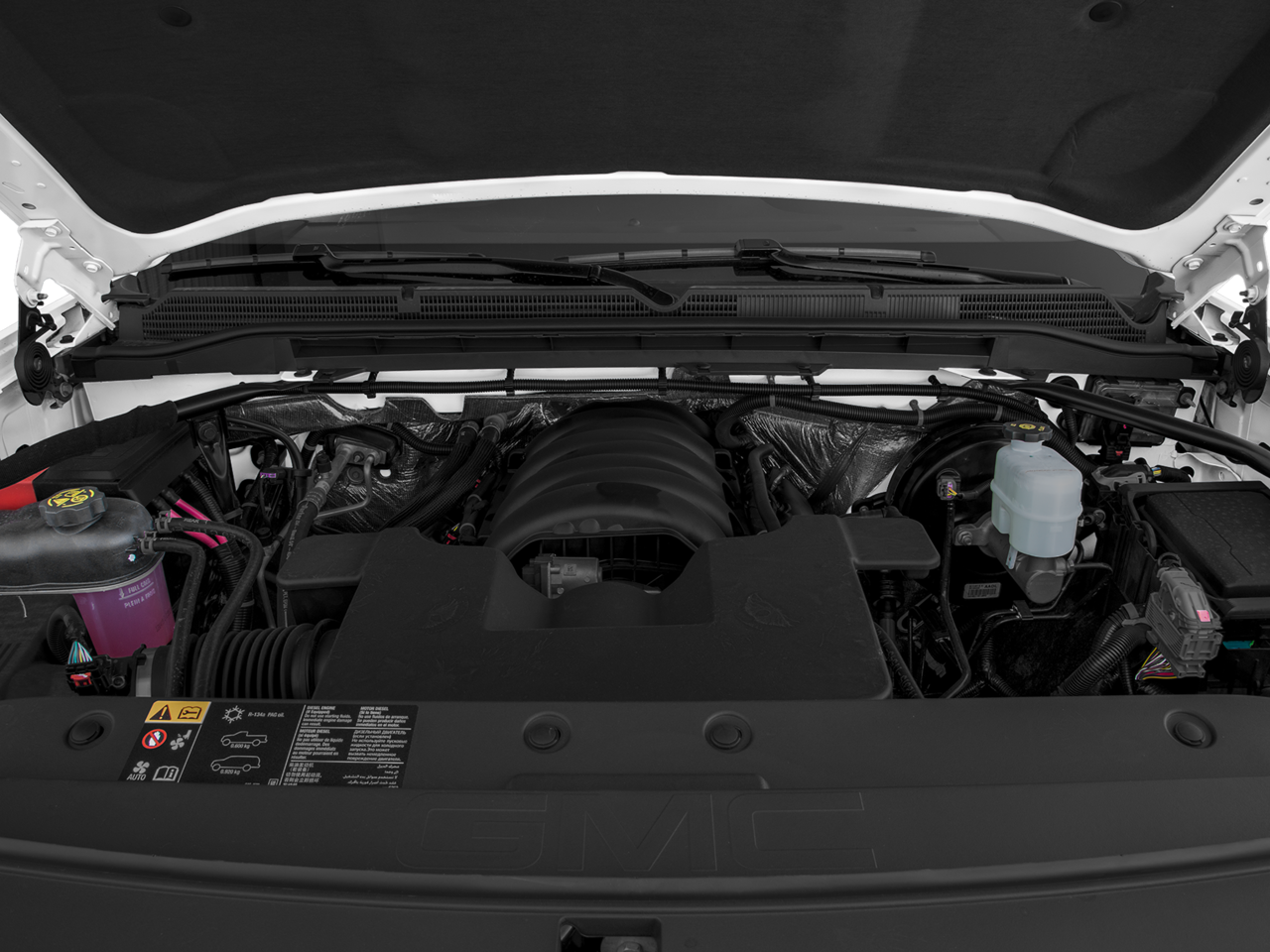 AUDIO SYSTEM, 8" DIAGONAL COLOR TOUCH SCREEN WITH GMC INFOTAINMENT SYSTEM, AM/FM/SIRIUSXM, HD RADIO with USB ports, auxiliary jack, Bluetooth® streaming audio for music and most phones, Pandora Internet radio and voice-activated technology for radio and phone (STD), ENGINE, 5.3L ECOTEC3 V8, WITH ACTIVE FUEL MANAGEMENT, DIRECT INJECTION and Variable Valve Timing, includes aluminum block construction (355 hp [265 kW] @ 5600 rpm, 383 lb-ft of torque [518 Nm] @ 4100 rpm; more than 300 lb-ft of torque from 2000 to 5600 rpm) (STD), TRANSMISSION, 6-SPEED AUTOMATIC, ELECTRONICALLY CONTROLLED with overdrive and tow/haul mode. Includes Cruise Grade Braking and Powertrain Grade Braking (STD).